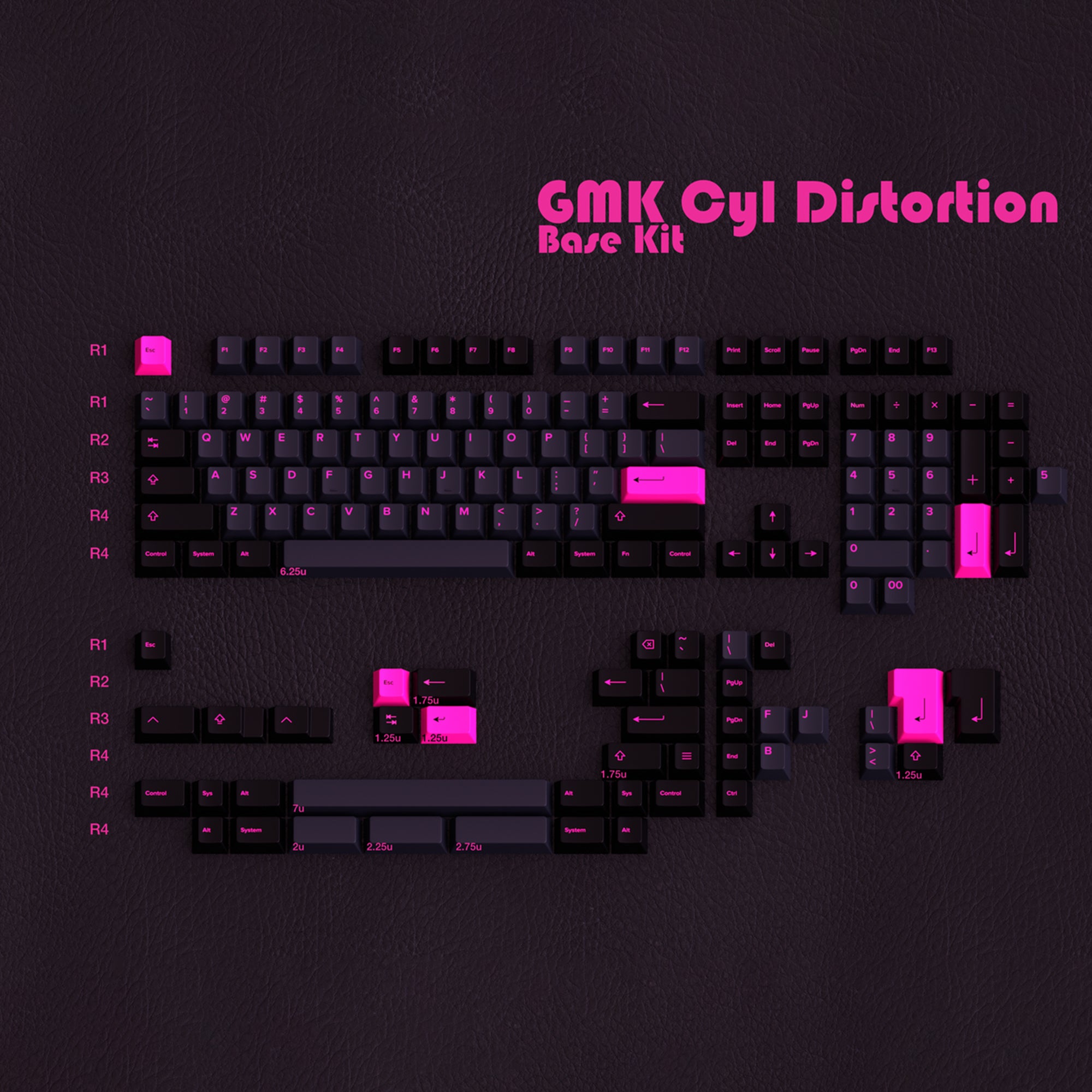 I have always admired the fashion style associated with punk and post-punk. I also think there is space for a set using a very vibrant pink. This set has undergone numerous incarnations, beginning as an SA set and later spending time in the Cherry profile. After a period in DSS, the decision was made to redo this in GMK stock colors, which IMO look very good.